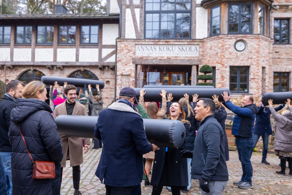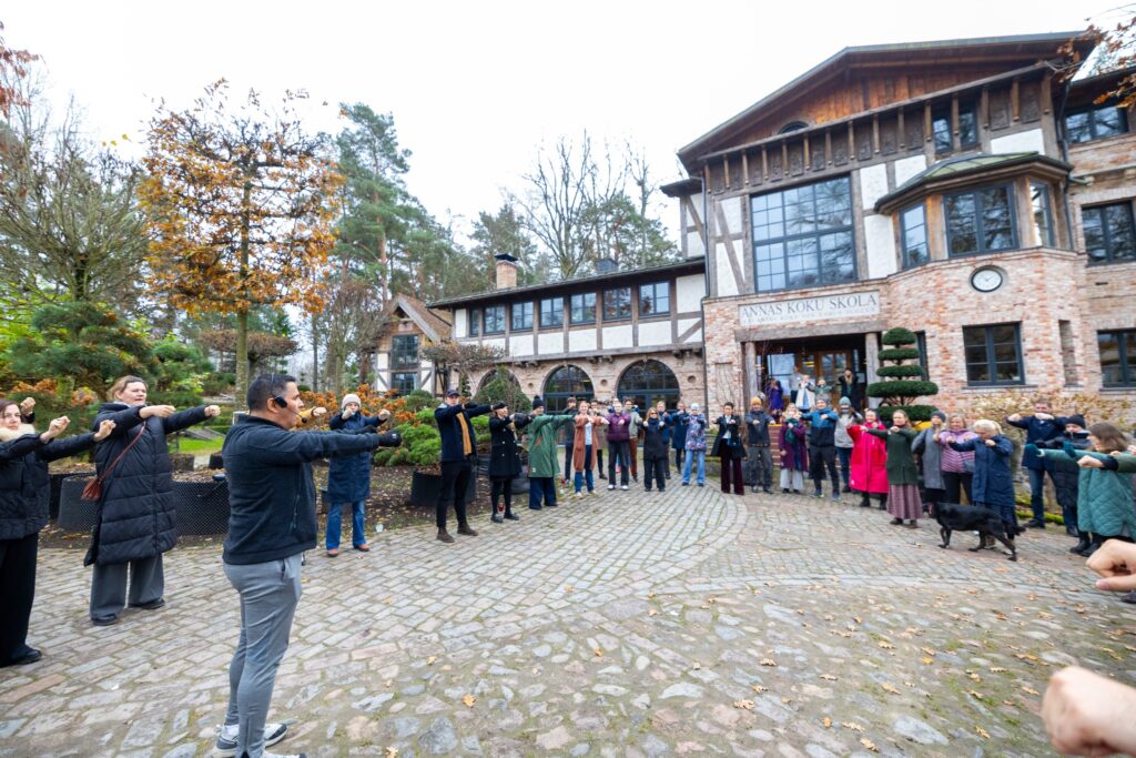 Dienu sākām ar ekskursiju pa Annas Koku skolu un parku. 🌳 Saimnieks Edgars lika mums paraudzīties uz apkārtējo vidi pavisam citām acīm – kā koku un dabas materiālus izmantot ilgtspējīgā būvniecībā un ainavā.